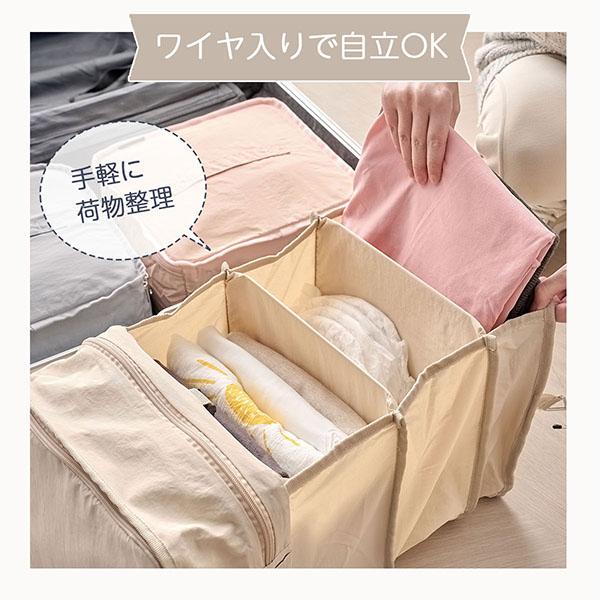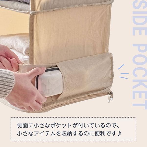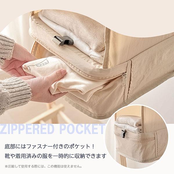 ・【追加の収納ポケット2】底部にはファスナー付きポケットがあり、使用しない服などを一時的に収納できる
