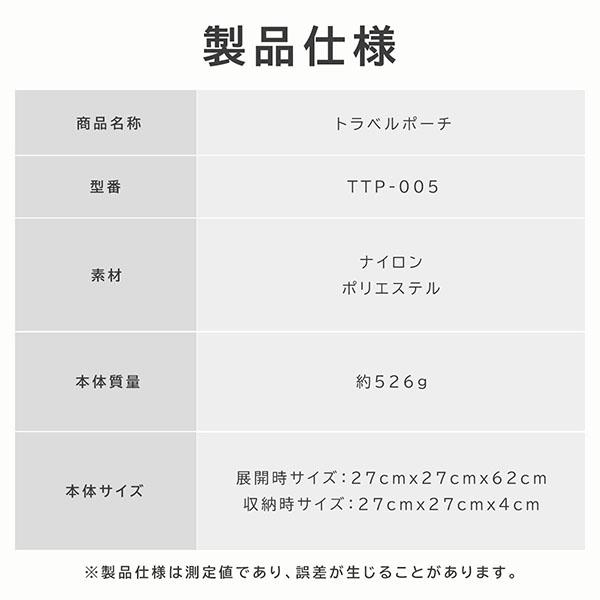 | 商品仕様 | 素材:ナイロン、ポリエステル 本体質量:約526g 展開時サイズ:約27×27×62cm 収納時サイズ:約27×27×4cm |