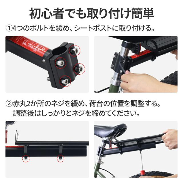 自転車 荷台 リアキャリア 後付け 自転車用 キャリア 自転車パーツ キャリア 荷物 耐荷重 9kg 荷物置き 取り付け 簡単 安定性 バツグン バンジーロープ ママチャリ チャリ ロードバイク