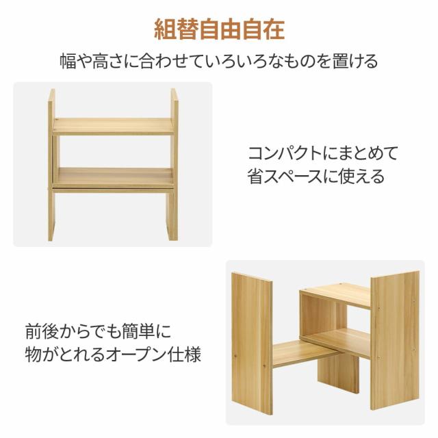 マルチラック 木製 木製ラック キッチンラック 伸縮 調味料ラック 置き キッチン カウンター上 収納 ラック 棚 収納 調味料 スパイス キッチンラック 本棚 机 デスク デスク上 デスクラック