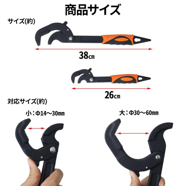 メンテナンス 大工仕事 ツール 設備 点検 便利 アイテム 工具用品 フィット 大きさスナップ グリップ 緩める 閉める 締める 万能レンチセット セット サイズ 対応 ツールキット ツールボックス 多機能 調整可能 対応サイズ 直径 14-60mm パイプレンチ モンキーレンチとしても使用可能 兼用タイプ 丸パイプ 特殊ナット 異形ボルト