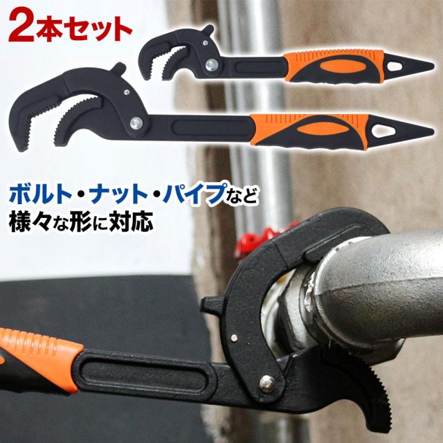パイプレンチ 2本組 万能レンチ 工具 大 小 パイプ ボルト ナット メンテナンス 締める 緩める 水道 蛇口 配管工事 フックレンチ ハンドツール diy