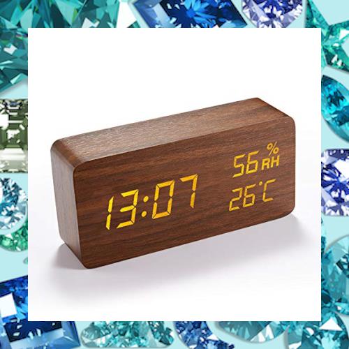 サイズ:15*7*4CM 2020最新デザイン 目覚まし時計 置き時計 木目 LEDデジタル時計 アラームクロック 温度湿度計 カレンダー 音声感知 USB/乾電池給電
