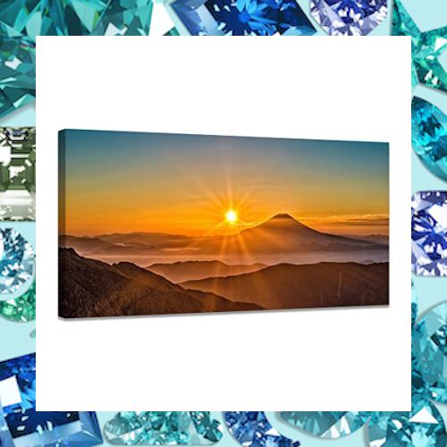 富士山 アートパネル 山 太陽 自然 絵画 風景画 ポスター 玄関 風水 開運 壁掛け 部屋装飾 木枠付きの完成品 (30x60cm)