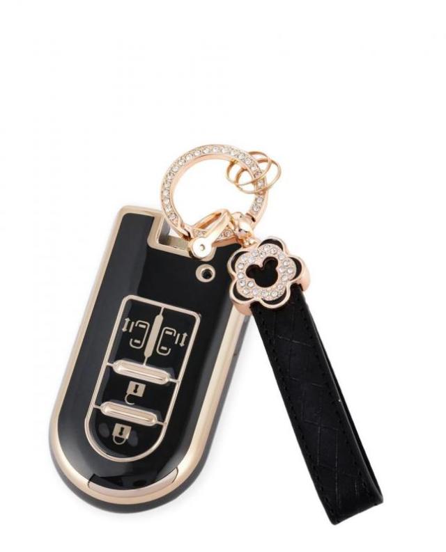 [Nacalikeey] キーケース適合トヨタダイハツ タンク タントキーカバー タントカスタム ウェイクかわいいキーホルダー新型ムーヴ キャンバス ムーヴカスタムスマート梅の花キーケーストヨタ タンク TANK ルーミー ROOMYさくらキーカバー 花キーホルダー(ブラック,4ボタン)