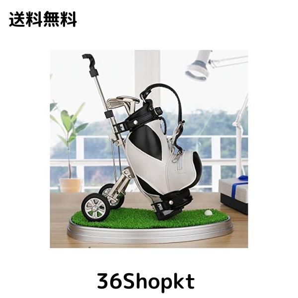 ゴルフペン ペン立て3本のペン ゴルフ景品 ゴルフ記念品 ゴルフギフト 卓上スタンド ミニPUゴルフバッグ付き (黒+白(芝生付き))
