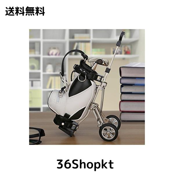 ゴルフペン ペン立て3本のペン ゴルフ景品 ゴルフ記念品 ゴルフギフト 卓上スタンド ミニPU ゴルフバッグ付き (黒+白)