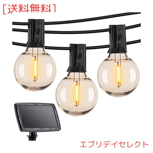 防雨型ソーラーLEDストリングライト 10M 15個LED電球付き E12口金 2700K電球色 PC素材 破損しにくい LEDイルミネーションライト 屋内/屋