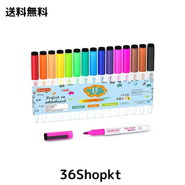 Shuttle Art ホワイトボードマーカー 15色 マグネットホワイトボードマーカー ホワイトボード ホワイトボード ホワイトボードの書き込みに最適 学校やオフィスの家のミラーに