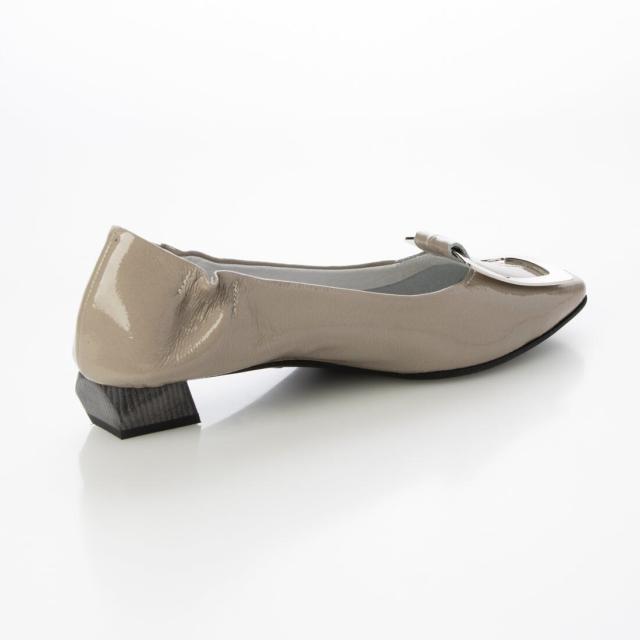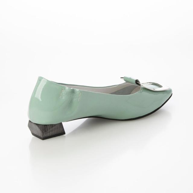 24春夏新作フラット本革スクエアトウバックル付きパンプス