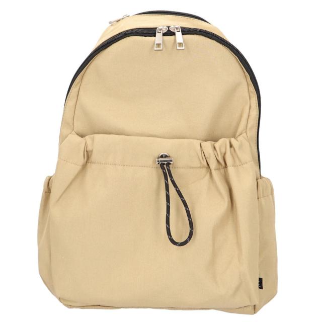 くしゅくしゅとしたフォルムに、ドロストポケットがアクセント♪Legato Largoから「ドロストバックリュック」が新登場。【カジュアルライクなデザイン】シャリっとした張り感と光沢のあるナイロン素材。落ち着きのある仕上がりで、大人のカジュアルコーデにマッチ。【デイリーに使い回せるアイテム】サッと持ち出せて体に負担がかからず、使い心地軽やか。身軽にお出かけできて、色んなシーンで重宝。【ガバっと開いて出し入れスムーズ】左右どちらからも開くダブルファスナーで、大きくオープン。使いたいアイテムが一目瞭然◎【A4サイズ対応で小物がひとまとめ】内側はA4サイズが縦向きにすっぽり。程よいマチ設計で、荷物がすっきり収まる容量15Lサイズ。【迷子知らず!充実の10ポケット仕様】キュッと絞れるドロストポケットを含む、内側・外側合わせて10個のポケットを装備!バッグの中で探す手間を省け、サッと取り出しOK。【負担をかけず背負い心地快適】背面とショルダーベルトは程よいクッション性があり、体にかかる負担を軽減。どちらもムレにくいメッシュ素材。ちょっとの雨なら大丈夫】表面は汚れや水滴を弾く撥水加工済み。お手入れもサッと拭き取るだけ。(※完全防水ではありません。)【年代問わず使えるシンプルさ】使う人を選ばない無地カラー。お気に入りの色をチョイスして♪【ポケット仕様】内側:オープンポケット×3、ファスナーポケット×1、ボトルポケット×1前面:マグネットボタンポケット×1(ドロストポケット)上部:ファスナーポケット×1サイド:オープンポケット×2(口ゴム仕様)背面:シークレットポケット×1