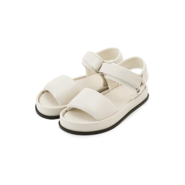 アダムエロぺらしくクリーンなムードに仕上げたカジュアルなスポサン。トレンドのパデッドのフォルムを取り入れて女性らしい柔らかなムードを演出。