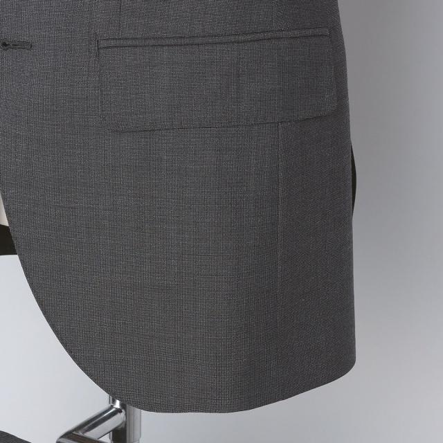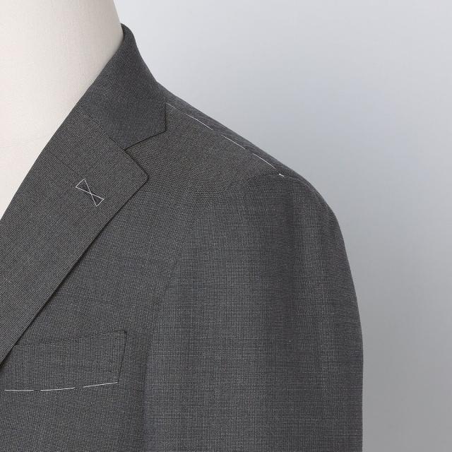 ジャケット:シングル3ボタン、背抜き裏、総毛芯