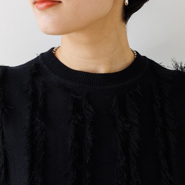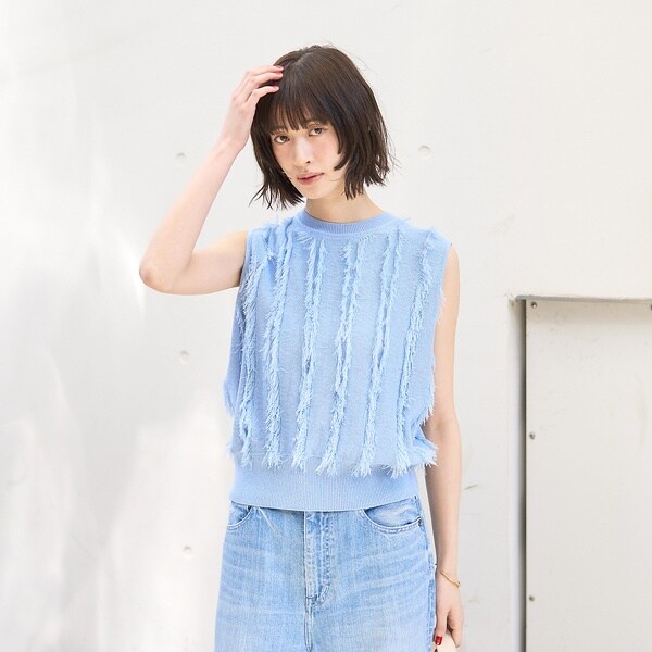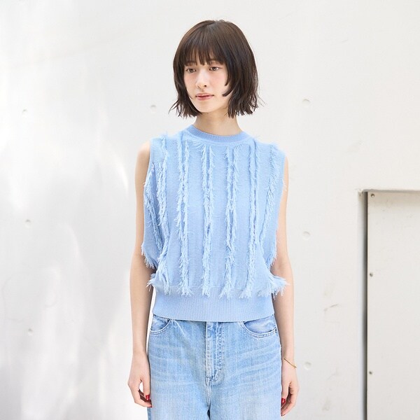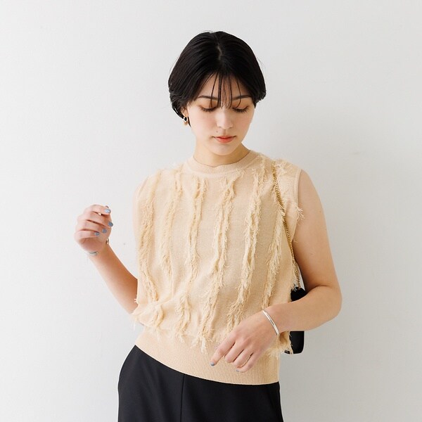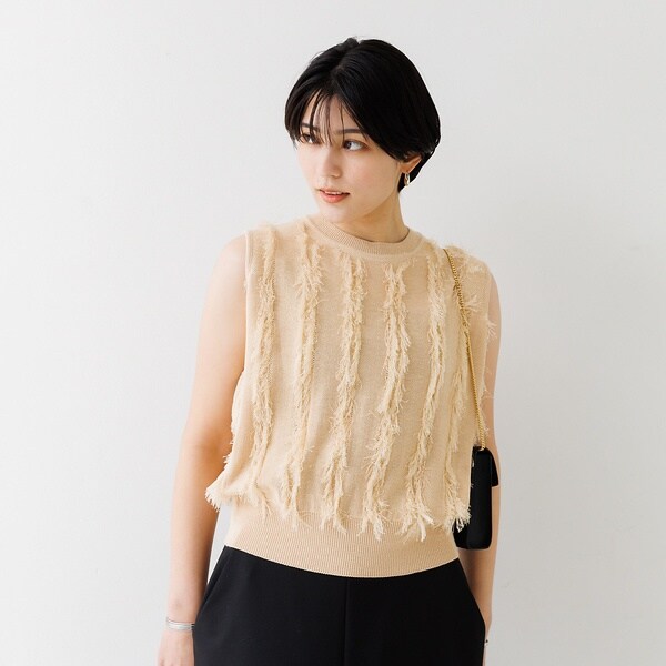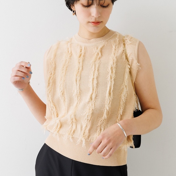 ルージュ・ヴィフ ラクレ(Rouge vif la cle)/フリンジニットノースリーブプルオーバー
