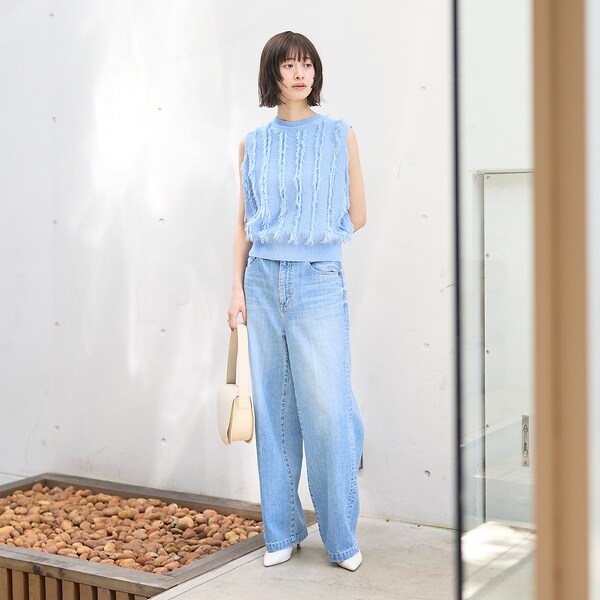 短めの着丈でパンツともスカートともバランスよくお召しいただけます。