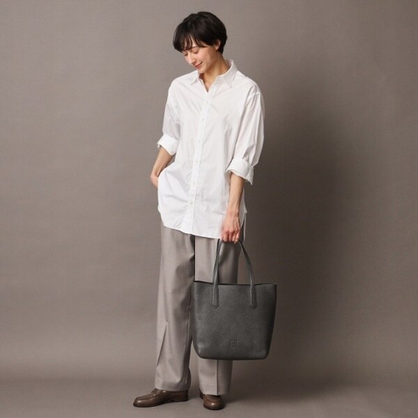 ユニセックスで使える軽量なオープントートはA4のクリアファイルが入るサイズ。