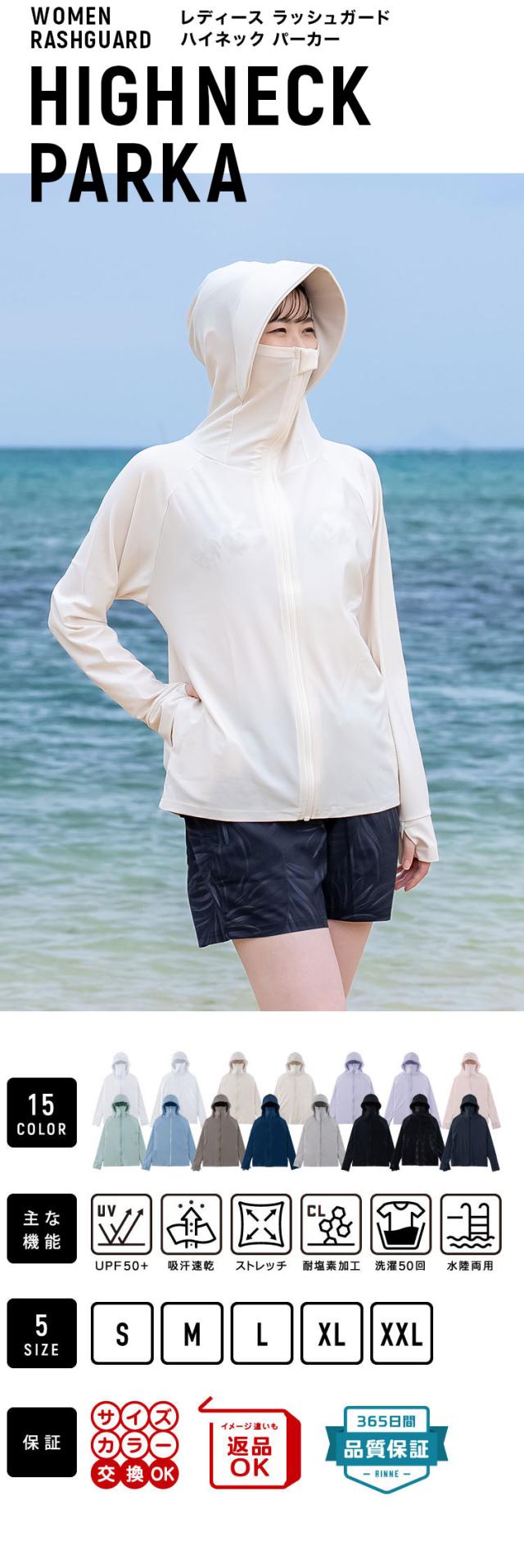 ラッシュガード レディース ハイネックパーカー つば付き フェイスマスク 長袖 体型カバー UVパーカー 日焼け対策