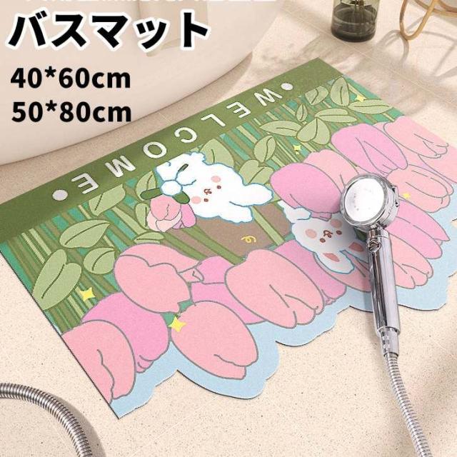 バスマット 玄関マット 吸水 速乾 滑り止め バス用品 浴室 可愛い ウサギ 花