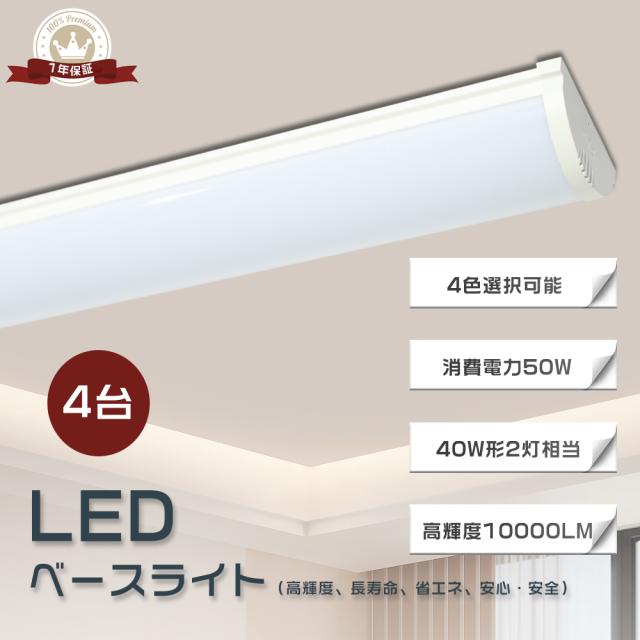 【4台セット】LEDベースライト 120cm LEDベースライト 逆富士形 40W2灯相当 器具一体型 LED蛍光灯 LEDベースライト 消費電力50W 長さ1200mm 全光束10000lm LEDベースライト トラフ おしゃれ 防震 照射角度180° エコ 省エネ 薄型 天井照明 PSE認証済み 色選択可能