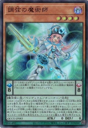 デッキから「調弦の魔術師」以外の「魔術師」Pモンスター1体を守備表示で特殊召喚する。