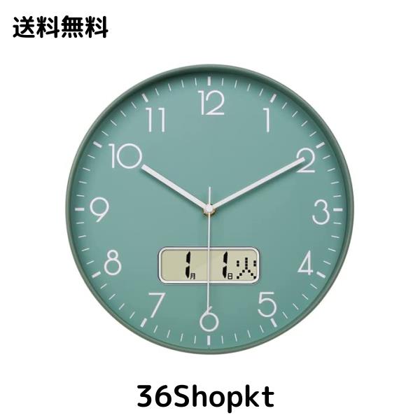 ◆商品名:Nbdeal 掛け時計 電波時計 静音 連続秒針 おしゃれ 日付 曜日表示 直径30cm 壁掛け 時計 北欧 (グリーン)