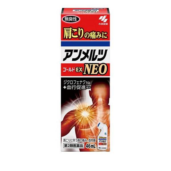 ●アンメルツゴールドEX NEO(イーエックスネオ)●肩こりの痛みに●ジクロフェナクが患部に浸透、痛みを鎮める●3種の血行促進成分がジンジン温かな実感とともに、滞った患部の血流を改善●l-メントール5%配合、爽快な使い心地●90mLは、背中まで届く、ロングボトル
