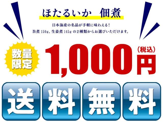 送料無料 1,000円 ぽっきり ポッキリ 日本海産 ほたるいか 佃煮 約150g 2種類から選べる⇒【1】旨煮 / 【2】生姜煮 ホタルイカ 贈り物 ギフト ご飯のお供 おつまみ いか イカ ※冷凍商品との同梱不可