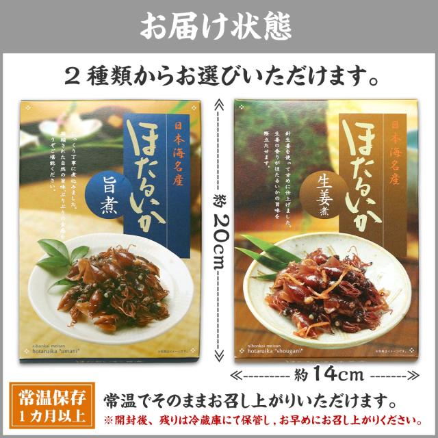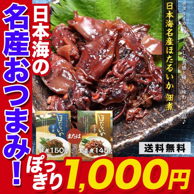 送料無料 1,000円 ぽっきり ポッキリ 日本海産 ほたるいか 佃煮 約150g 2種類から選べる⇒【1】旨煮 / 【2】生姜煮 ホタルイカ 贈り物 ギフト ご飯のお供 おつまみ いか イカ ※冷凍商品との同梱不可