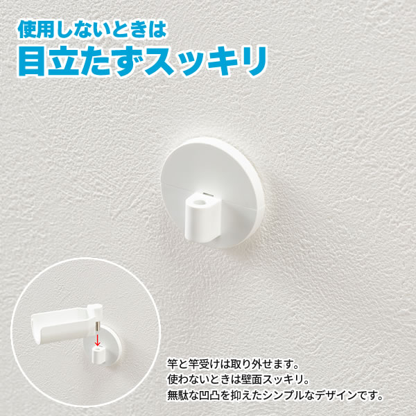 使用しないときはスッキリ収納竿と竿受けは取り外せるので、使わないときは壁面スッキリ。
