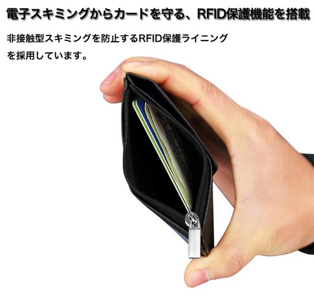 ミニマルなデザインながら、カード、キャッシュなどを収納できるジップポケットに、外側には便利なIDウィンドウとカードスロット付き。