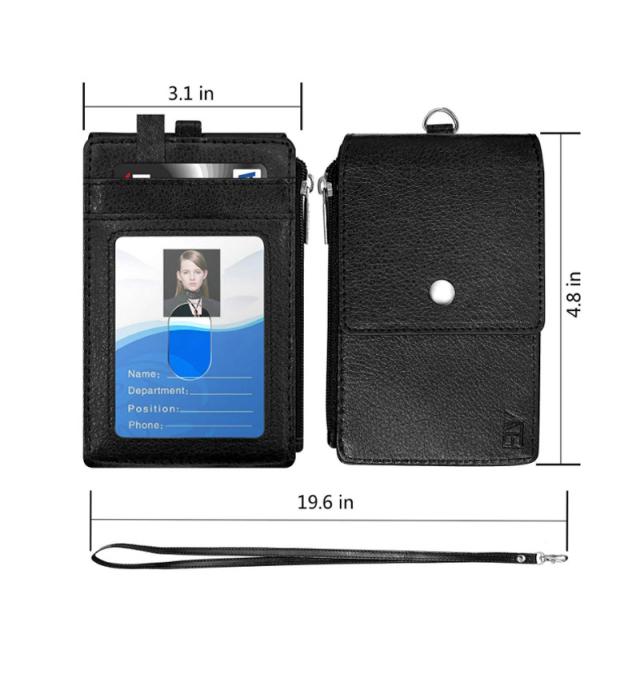 ストラップ付きの首から下げられるIDケースでオフィスのセキュリティカード入れにお勧めです。