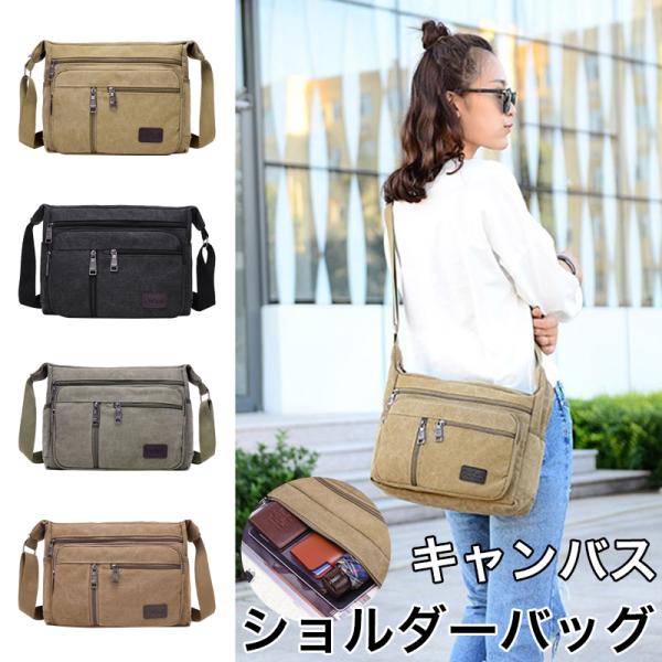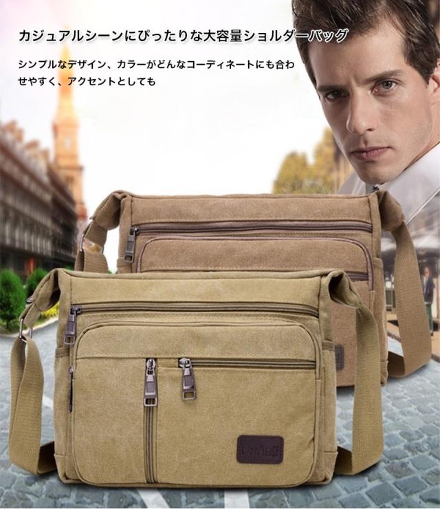 ショルダーバッグ メンズ 斜めがけ 大容量 帆布 キャンバス ショルダーバッグ レディース 大きめ 肩掛け a4 男女兼用 旅行 通勤 通学 ファスナー付き