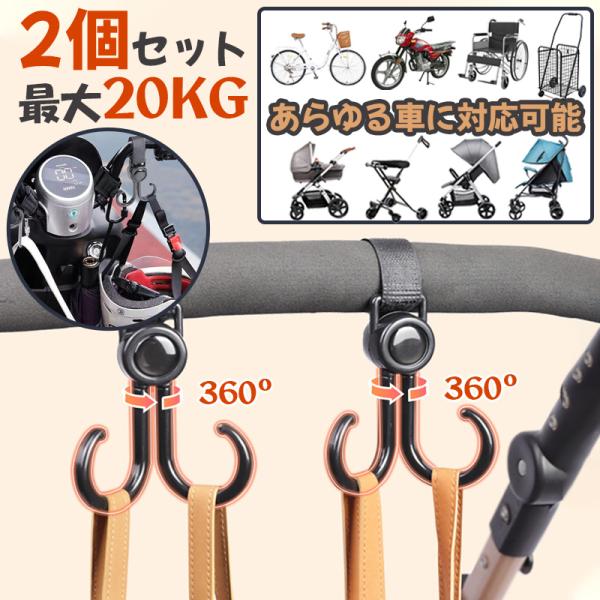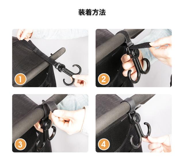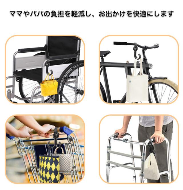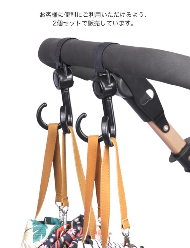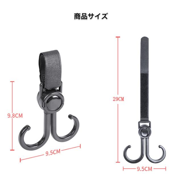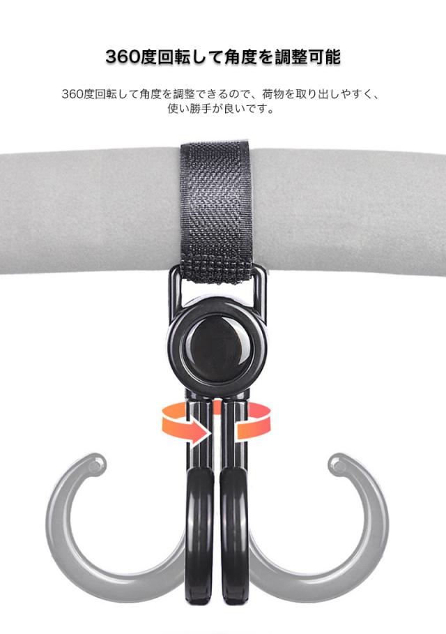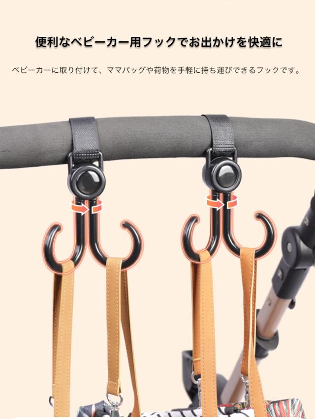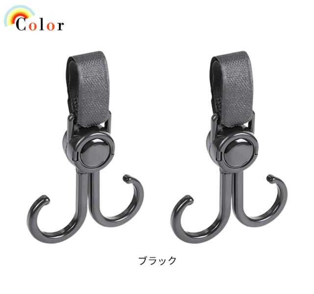 ベビーカー フック 回転 バギーフック 荷物 ベビーカー グッズ 360度 ママバッグ 自転車 車 子供 買い物カゴ ペット カート 車椅子 キャンプ フック 取り付け