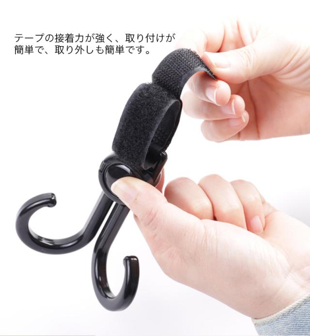 フック 2個セット 自転車 フック バイク フック 電動バイク フック 車椅子 フック カート 買い物カゴ フック 手押し車 フック ベビーカーフック 360度角度調整可能 ヘッドレストフック メタル製 便利グッズ マジックテープ式 ベビーカー ハンドル しっかり 固定 取り付け簡単 買い物袋 手提げバッグ 収納グッズ シンプル 耐荷重10kg