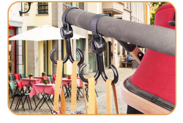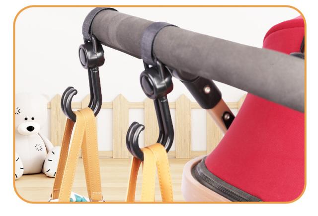 ベビーカーに取り付けて、ママバッグや荷物を手軽に持ち運びできるフックです。