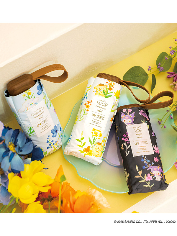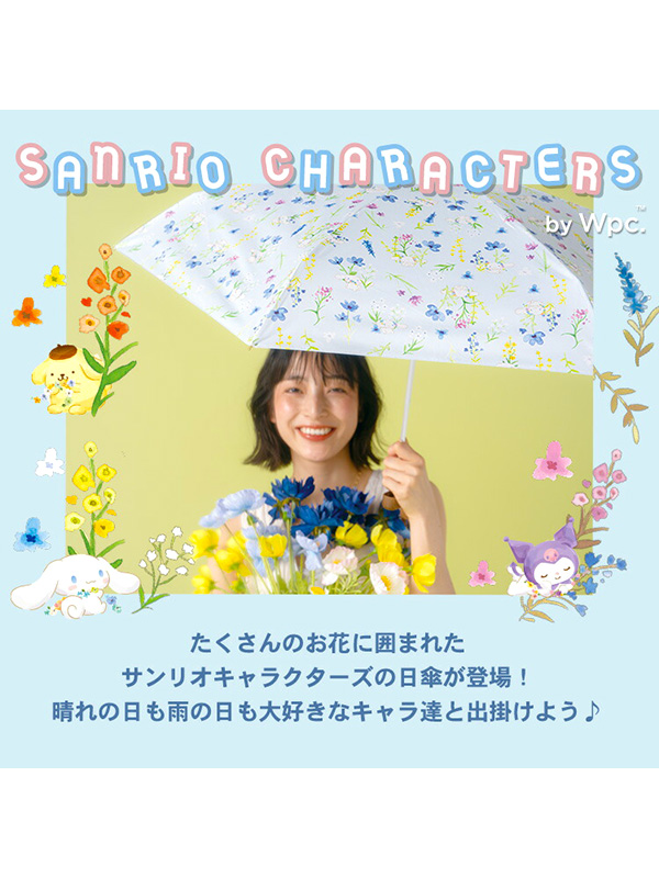 Wpc ダブルピーシー サンリオ 折りたたみ傘 日傘 お花の優しい水彩風デザインがかわいい!シナモロール、ポムポムプリン、クロミがかわいい水彩タッチの折りたたみ日傘に!