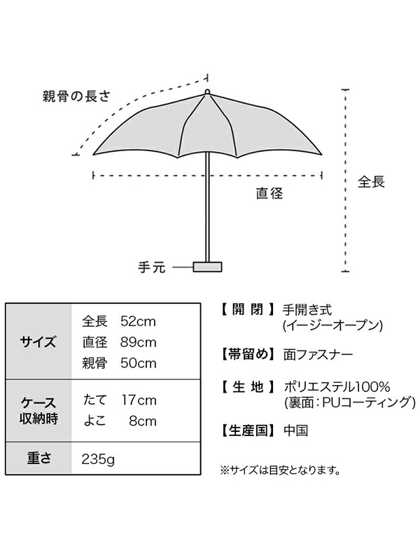 サイズ(cm)/全長/直径/親骨/重量(g)
