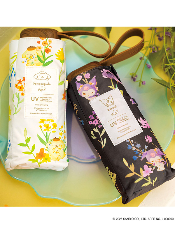 Wpc Sanrio Characters Blackout Watercolor Flower Mini Wpc サンリオキャラクターズ 遮光 水彩 フラワー ミニ 【Wpc(ダブルピーシー)】 「新たな可能性を生み出す」をスローガンに2004年に誕生したドメスティックブランド。 様々な世代・ジャンルに合った方へ、雨の日だけでなく、天気によって変わる”ライフスタイリング”を提案していきます。 そして。ご愛用いただけるお客様の毎日が楽しくなる製品をお届けします。 お花の優しい水彩風デザインがかわいい!折りたたみ日傘 シナモロール、ポムポムプリン、クロミがかわいい水彩タッチの折りたたみ日傘に! サンリオキャラクターズが色とりどりのお花を髪飾りや花束にして遊ぶ、かわいらしい姿が描かれています。 晴れの日も雨の日も、かわいいサンリオキャラクターズと出掛けよう? 5段式の骨を採用した折りたたみ傘。 コンパクトさを追求!鞄のポケットにスッポリと収納できるサイズ感の折りたたみ傘。 スクエアなので鞄のシルエットを崩さず収納できます。 【完全遮光日傘】 ■遮光率・UVカット率・ブルーライトカット率100%、UPF50+ 全カラー遮光率・UVカット率・ブルーライトカット率100%、UPF50+を実現しました。 日焼けを防ぐために必要なUVカットと、お肌に悪影響を与えるブルーライトカットの性能を兼ね揃えた生地を使用しています。 また涼しく過ごすための遮熱性も優れているため、暑い夏の熱中症対策にも。 ■傘内側の黒コーティングが照り返された紫外線、ブルーライトを9割吸収 傘の内側で起こる光の反射を大幅に減らして肌にダメージを与える有害光線からお肌を守ります。 ※記載の遮光率・紫外線遮蔽(UVカット)率・ブルーライトカット率、UPF値は生地の状態での測定値です。 傘本体の性能を示す数値ではございません。 また、生地に施された刺繍・縫製などUV加工生地以外の部分もその限りではありません。 ※ブルーライトは可視光線遮蔽率を計測(分光光度計法/可視光線遮蔽率(400〜780nm))した数値、 可視光線吸収率を計測(分光分析/可視光線(400〜780nm)透過率・反射率より算出)した数値に基づく。 ※直接肌に照り返された光を吸収するものではありません。日焼け止め等、他のUVケア用品との併用をお勧めします。 【雨の日も使える日傘(晴雨兼用)】 この製品は日傘としてお使い頂くことを主としていますが、はっ水防水加工を施しているため雨傘としてもお使いいただけます。 ※激しい雨や長時間の雨傘としてのご使用は雨漏りや色落ちの原因となる可能性がございます。またデザインの特性上、完全な防水はっ水加工が難しい場合があり、雨が染み込むことがありますのでご注意ください。 ≪開閉方法≫ 手開き(イージーオープン)仕様。ポキポキ折らずにスムーズに開閉できます。 ご使用になる前に製品に付属しているご使用上の注意をお読みください。 | ||||||||||
