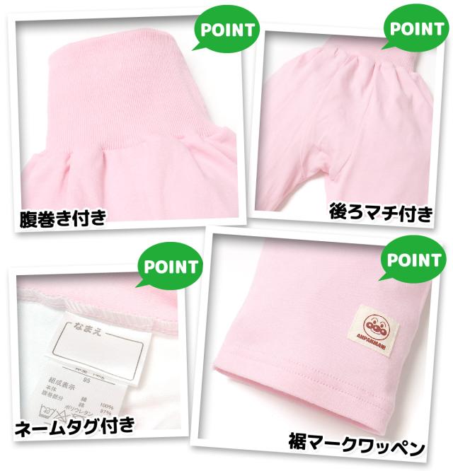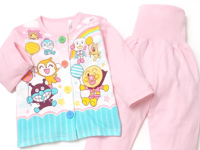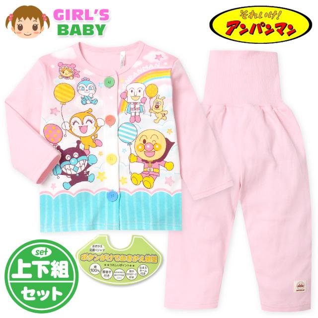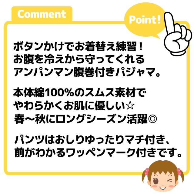 【送料無料】女児 ベビー お着替え練習 長袖 パジャマ アンパンマン 腹巻付 スムス 本体綿100% iw-1014a-pk【メール便対応】