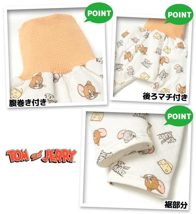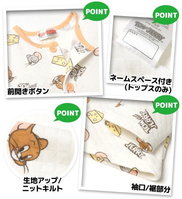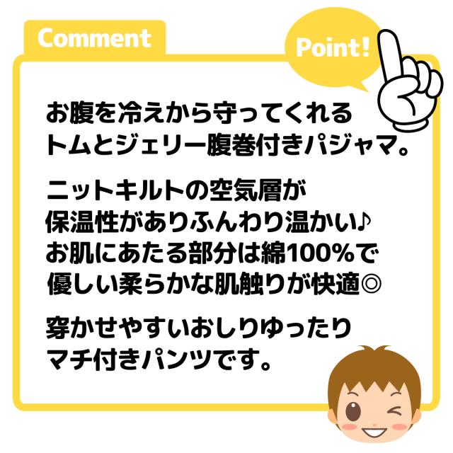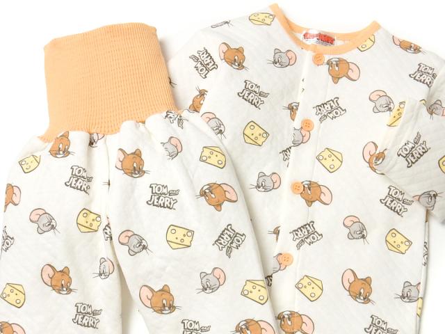 【送料無料】男児 ベビー ニットキルト 長袖 パジャマ トムとジェリー 腹巻付 前開き 肌側綿100% 保温性 iw-1020【メール便対応】