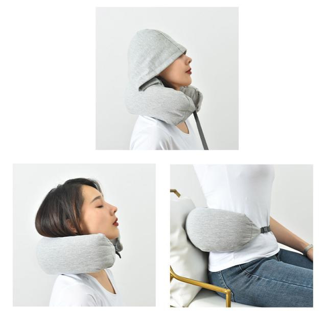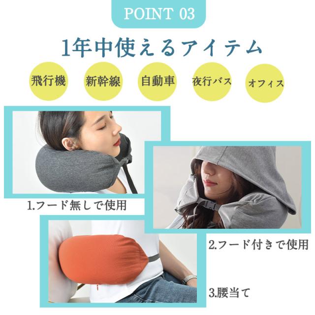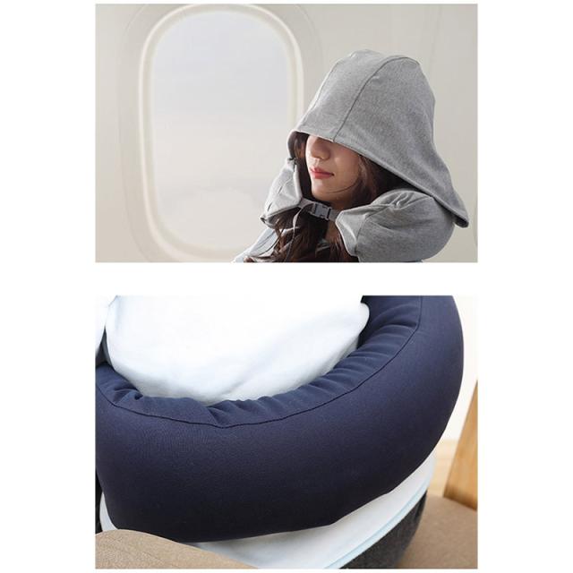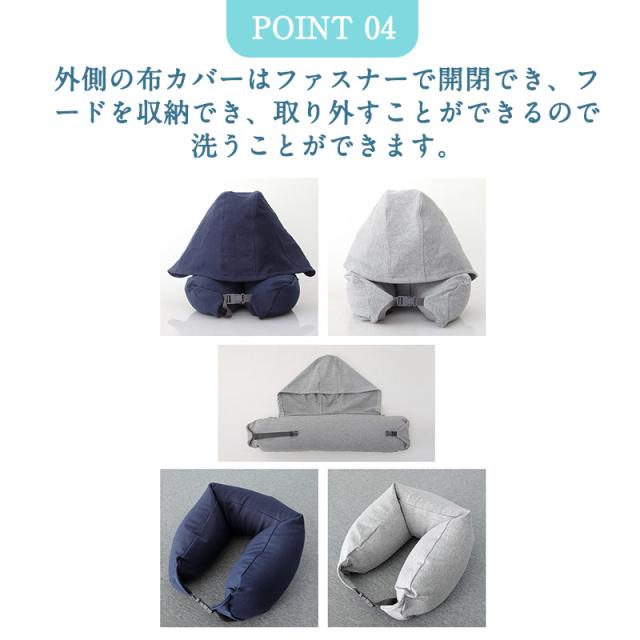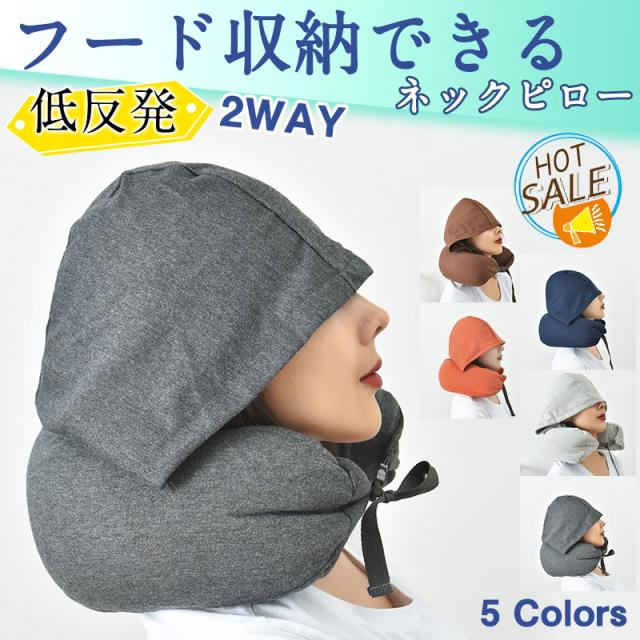 ネックピロー 飛行機 車 子供 低反発 首枕 フード付き 携帯枕 旅行用 コンパクト 夜行バス 新幹線 首クッション トラベルクッション 持ち運び