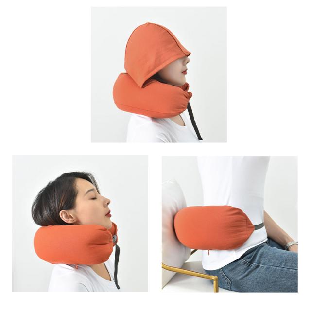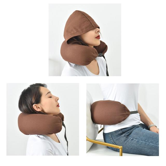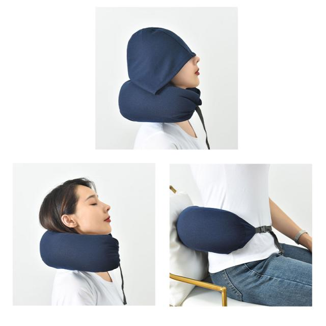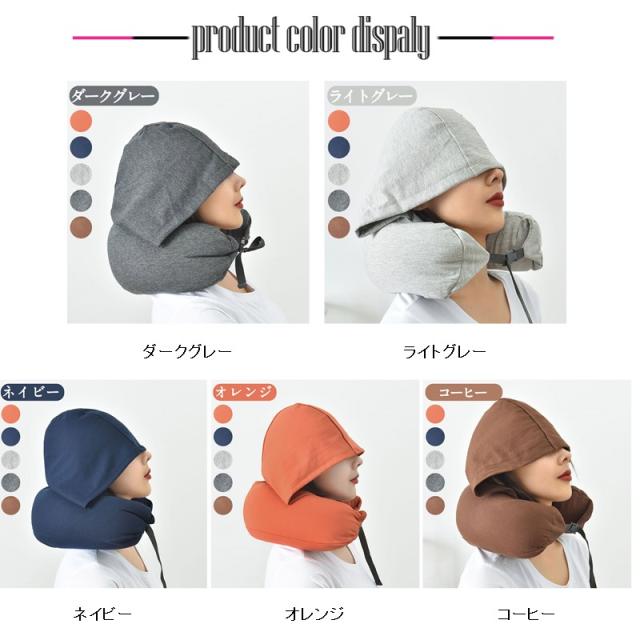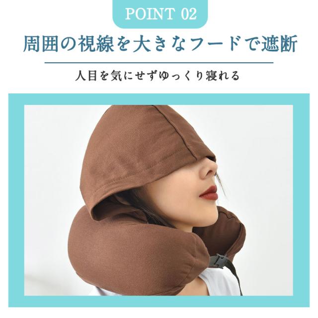 顔をすべて覆えるほどの大きいフードが魅力のネックピローです。
