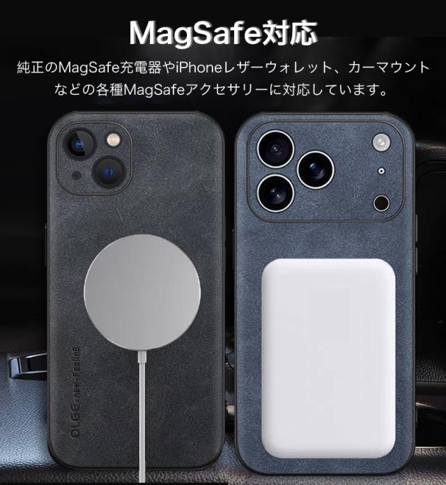 アイホン ケース おしゃれ 本革調 レザー カバー 耐衝撃 MagSafe対応 オシャレ スマホケース MagSafe式カーマウント対応 カメラ保護 衝撃吸収 軽量 薄型