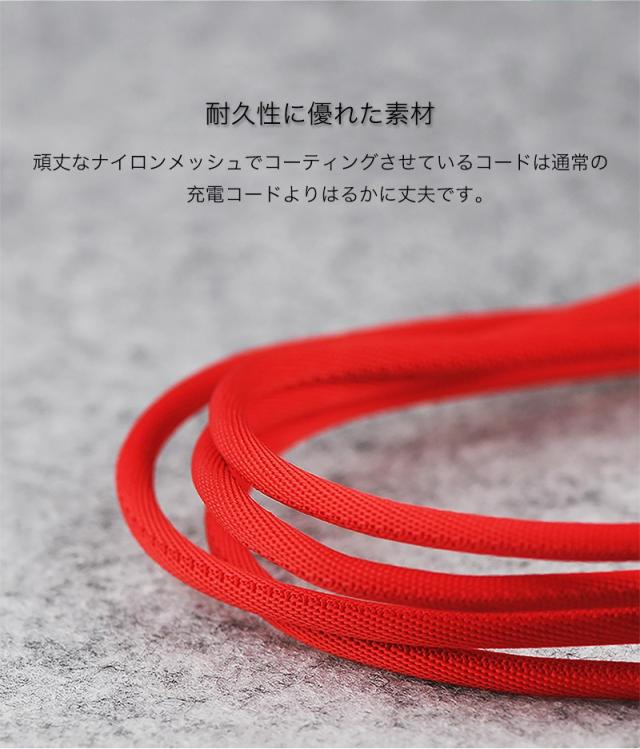 TypeC USB充電ケーブル Type-C Type C 充電ケーブル 最大2.4A 急速充電 L字コネクタ 頑丈 ナイロンメッシュ 丈夫 高耐久 絡みにくい 長さ 100cm 200cm スマートIC機能搭載