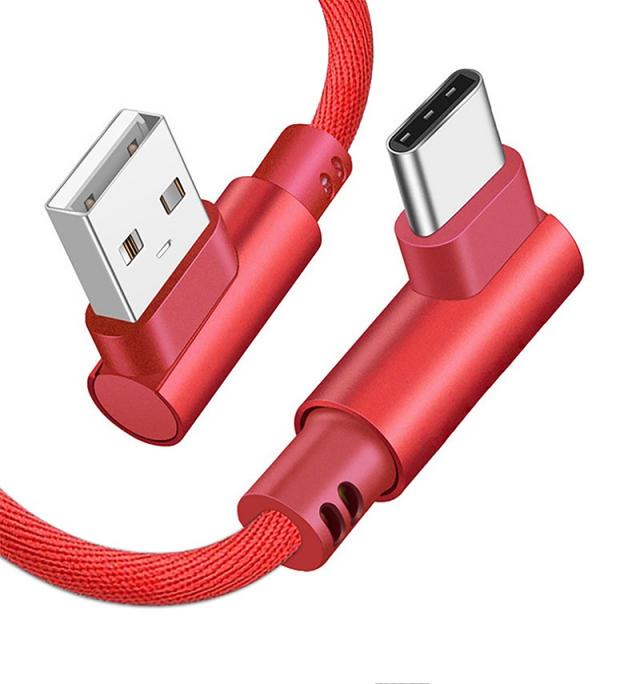 ケーブルの出っ張りを抑え、スマホにスマートな配線ができるL字コネクタを採用、データ転送や急速充電が可能な Type-Cケーブル。