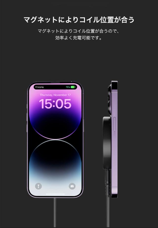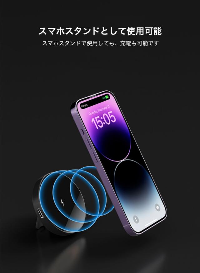 iPhone 充電器 magsafe 充電器 15w ワイヤレス充電器 iphone 16 15 17 pro max 充電器 スマホスタンド 急速 充電 アイフォン 充電器 Xpeira Galaxy Pixel ワイヤレス充電器 マグセーフ アンドロイド Qi 充電器 放熱