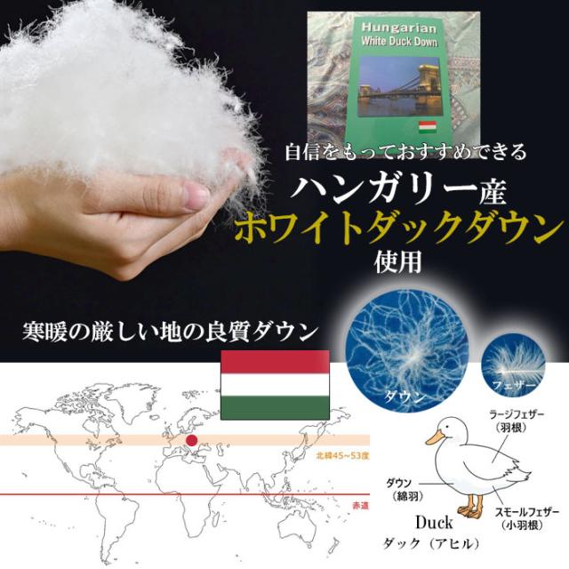 羽毛:ダウン:90% フェザー:10%(ハンガリー産ホワイトダック)