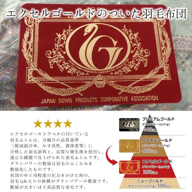 エクセルゴールドラベルの付いている羽毛ふとんは、