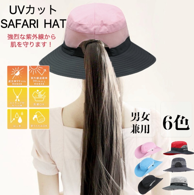・紫外線防止、撥水加工シンプルサファリハット