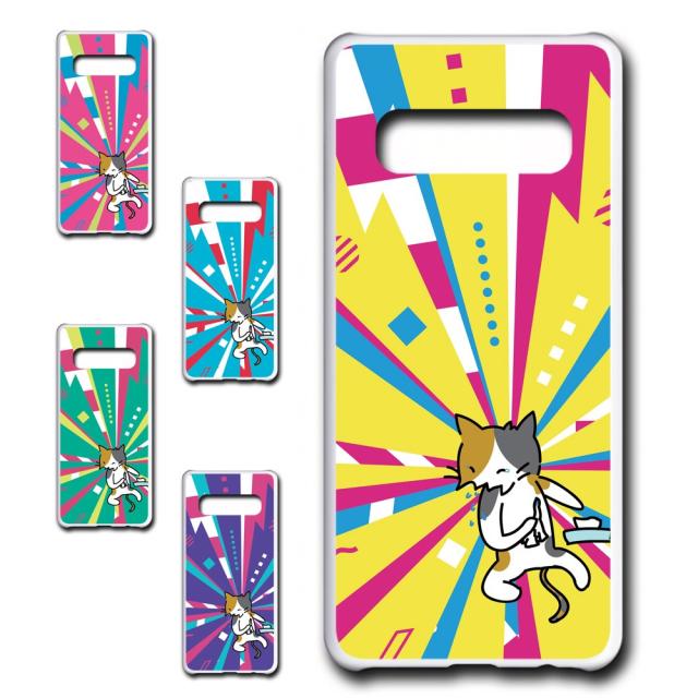 Galaxy S10Plus SCV42 ケース ネコ イラスト くしゃみ 三毛猫 花粉症 こより 猫 ねこ ハードケース プリントケース 携帯ケース 携帯カバー カバー けーす ハクション sc04l ギャラクシーs10プラス ぎゃらくしーs10ぷらす galaxy s10plus